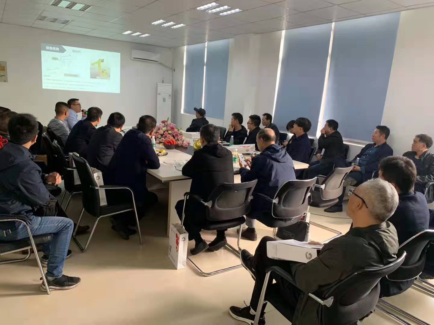 在參觀車間以及倉(cāng)庫(kù)結(jié)束以后,考察團(tuán)一行來到公司會(huì)議室,公司總經(jīng)理殷杰、副總經(jīng)理汪存益就公司發(fā)展,產(chǎn)品技術(shù)以及銷售案例等進(jìn)行了詳細(xì)介紹。并對(duì)參觀所見進(jìn)行答疑。