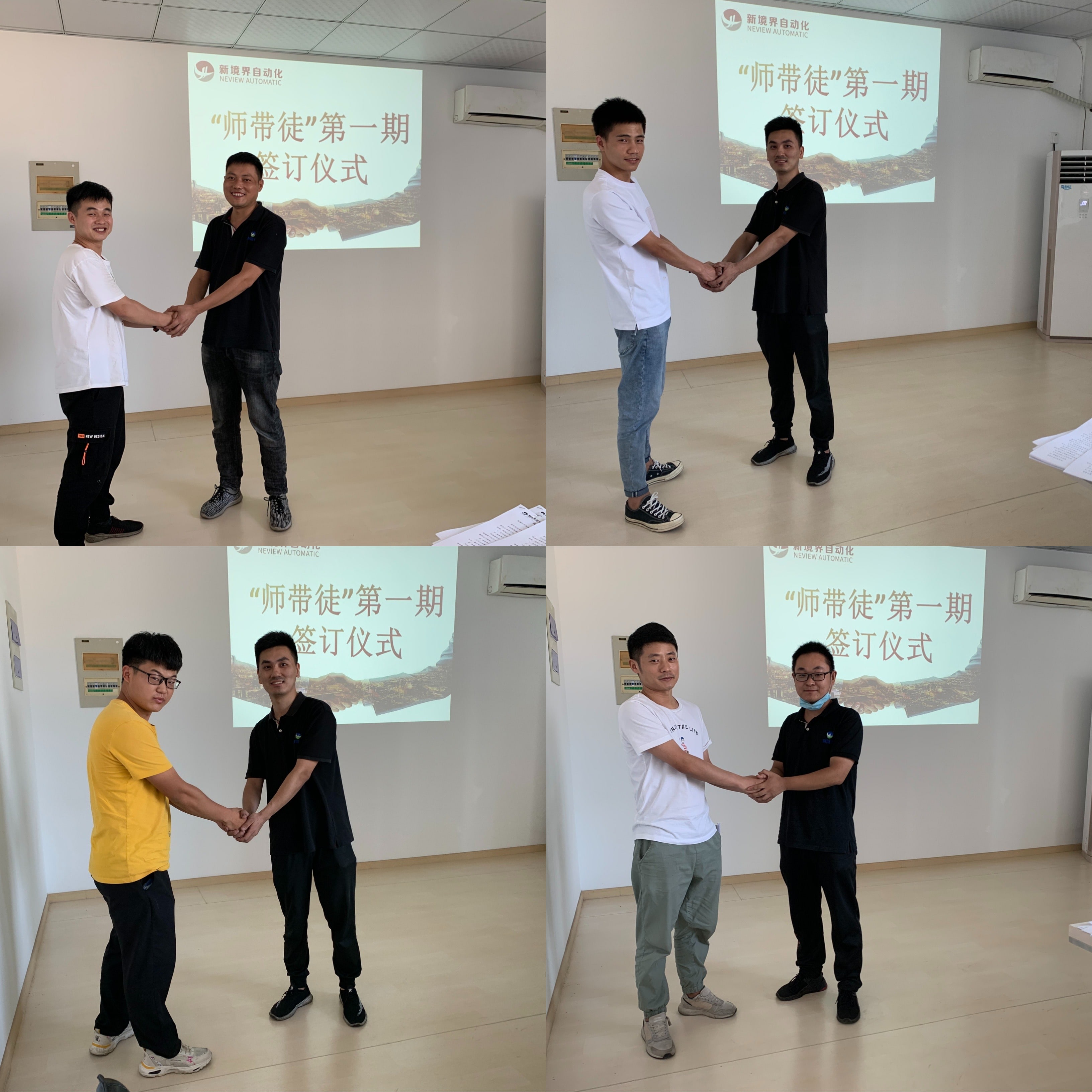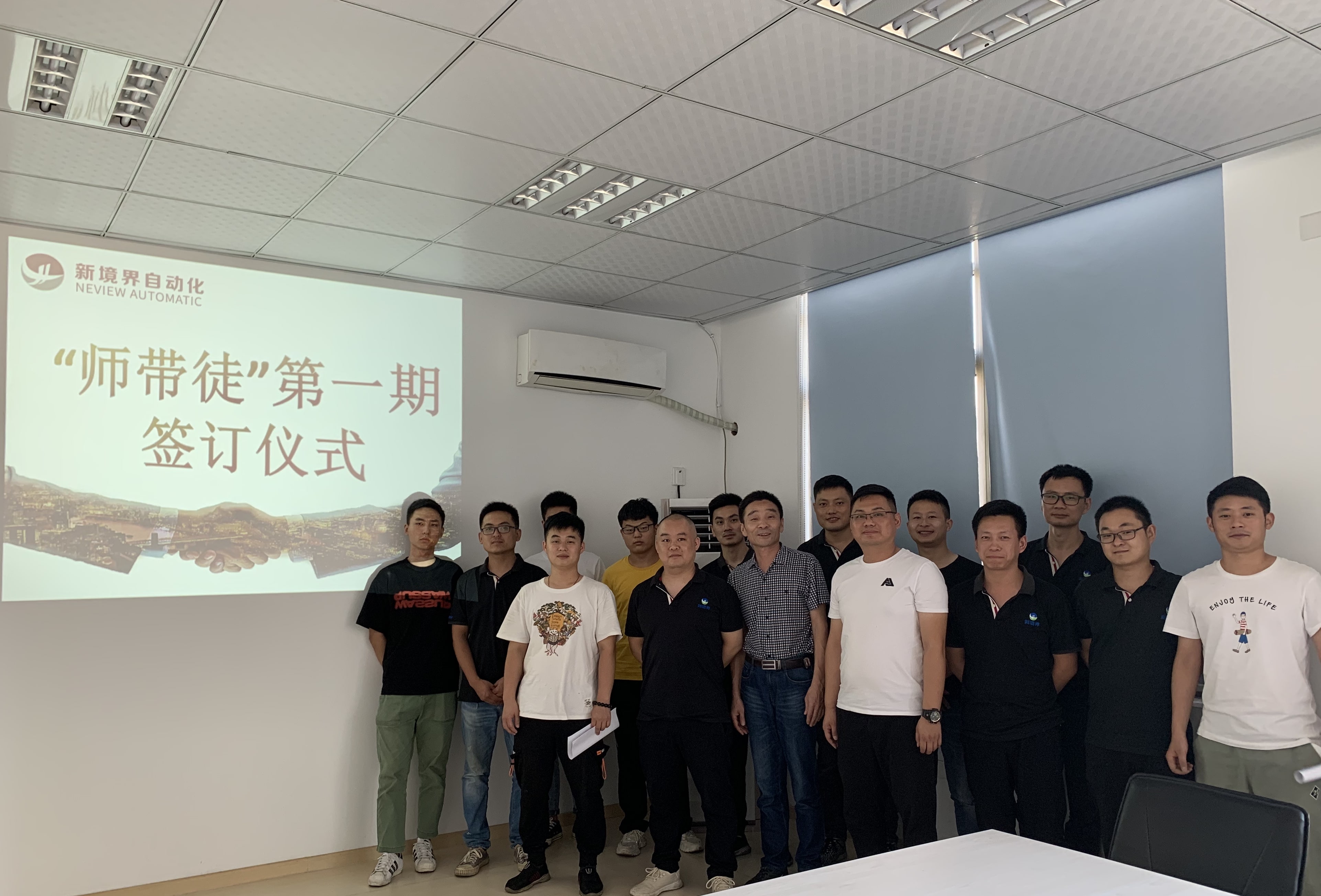 為加強(qiáng)公司技能型人才隊(duì)伍建設(shè),發(fā)揚(yáng)“傳、幫、帶”的優(yōu)良傳統(tǒng),促進(jìn)員工知識(shí)水平和技能水平的持續(xù)提升,新境界自動(dòng)化技術(shù)有限公司發(fā)布了《師帶徒的管理辦法》,搭建人才發(fā)展的平臺(tái)。8.13日下午,公司舉行了首屆“師帶徒”師徒互認(rèn)儀式,活動(dòng)由人事行政經(jīng)理葉建芳主持,常務(wù)副總晁明俊以及結(jié)對(duì)師徒參加。